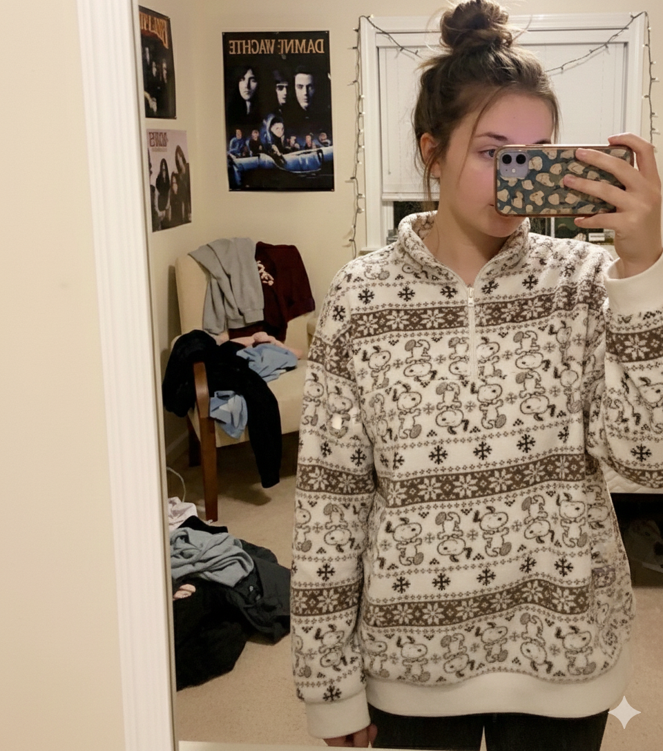 “literally living in this jumper. it’s so soft and the snoopy print is EVERYTHING 😭”